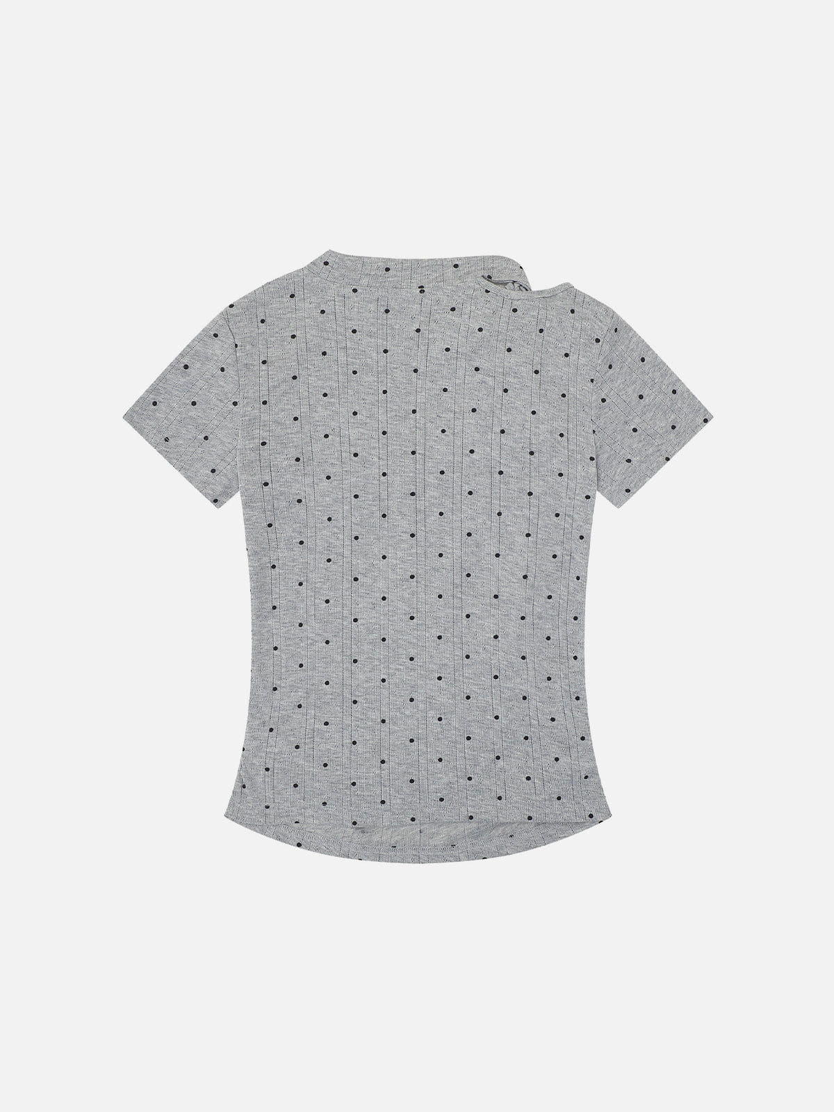 Slim fit silhouette with a subtle front tie detail enhances the natural shoulder line, creating a refined and balanced wearing effect. The structured ribbed texture and dotted pattern add visual interest while maintaining comfort for everyday wear. Ideal for layering or pairing with minimalist bottoms in casual to smart-casual settings.